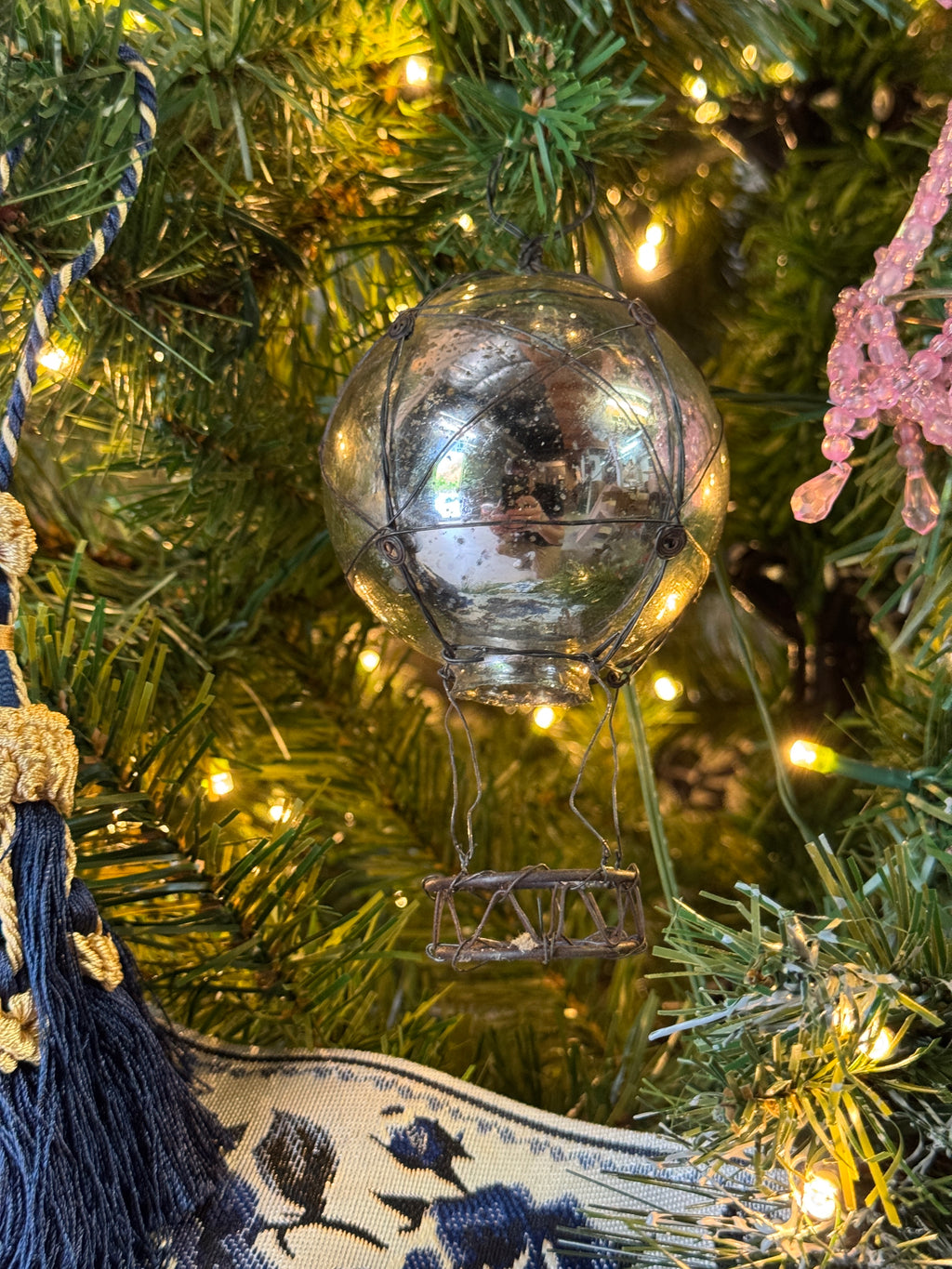 Mercury Glass and Wire Hot Air Balloon Bauble Christmas Ornament