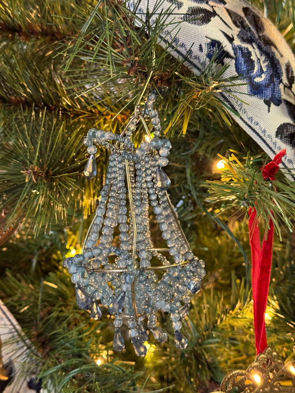 Blue Beaded Chandelier Hanging Christmas Ornament