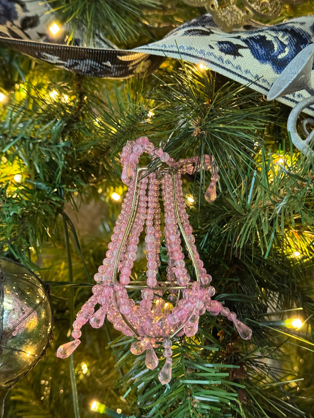 Pink Beaded Chandelier Hanging Christmas Ornament