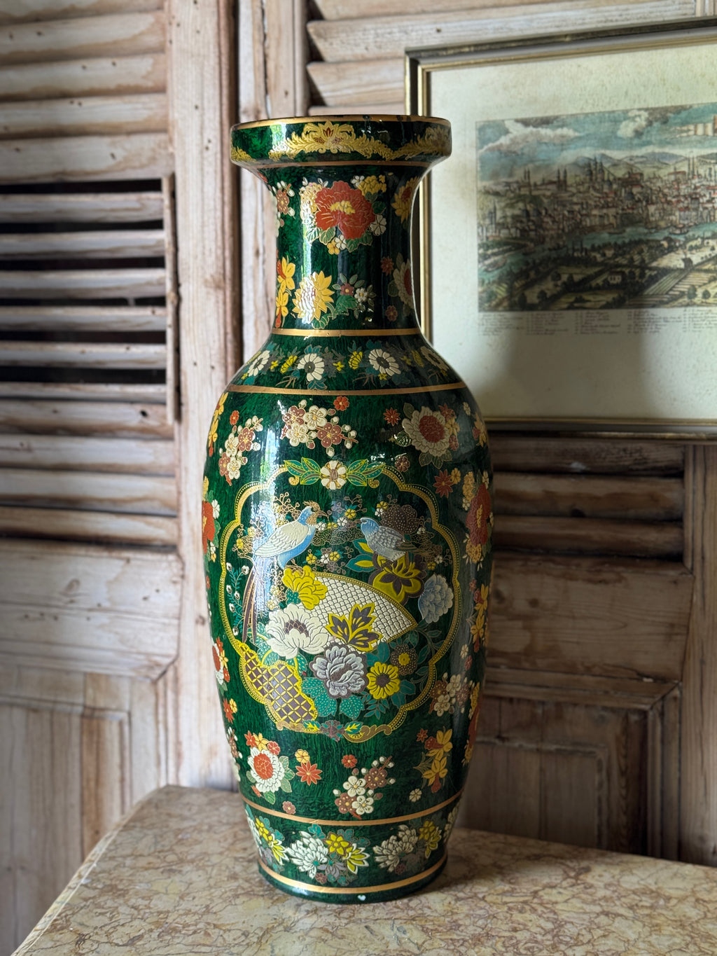 Vintage Hand-Painted Oriental Floor Vase