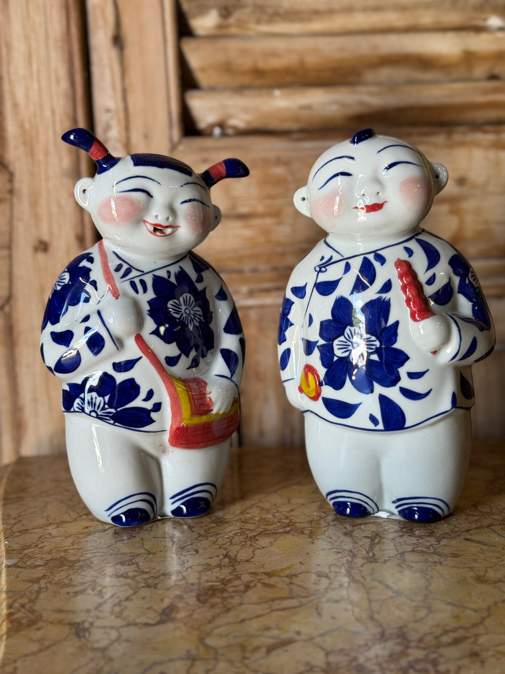 Pair of Hand-Painted Ceramic Oriental Figures